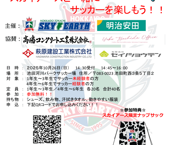 ✨明治安田スカイアースサッカー教室のお知らせ✨