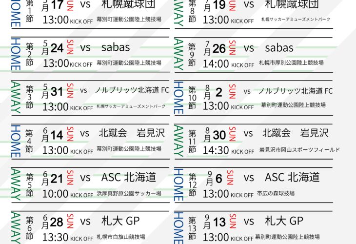 2026シーズン北海道リーグの試合日程が発表されましたのでお知らせいたします。 …