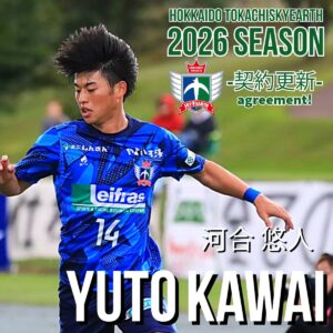 河合 悠人選手が2026シーズンも当クラブでプレーすることが決まりましたのでお知らせいたします。