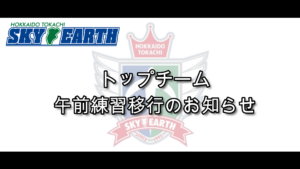 北海道十勝スカイアース・トップチームは、2026年4月より、チーム全体練習の実施時間を午前中へと変更いたします。