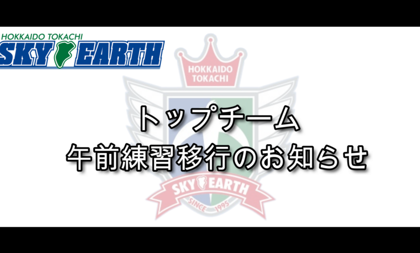 北海道十勝スカイアース・トップチームは、2026年4月より、チーム全体練習の実施時間を午前中へと変更いたします。