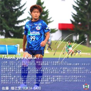 この度、佐藤瑠己安選手が2026シーズンをもって現役を引退することになりましたのでお知らせいたします。