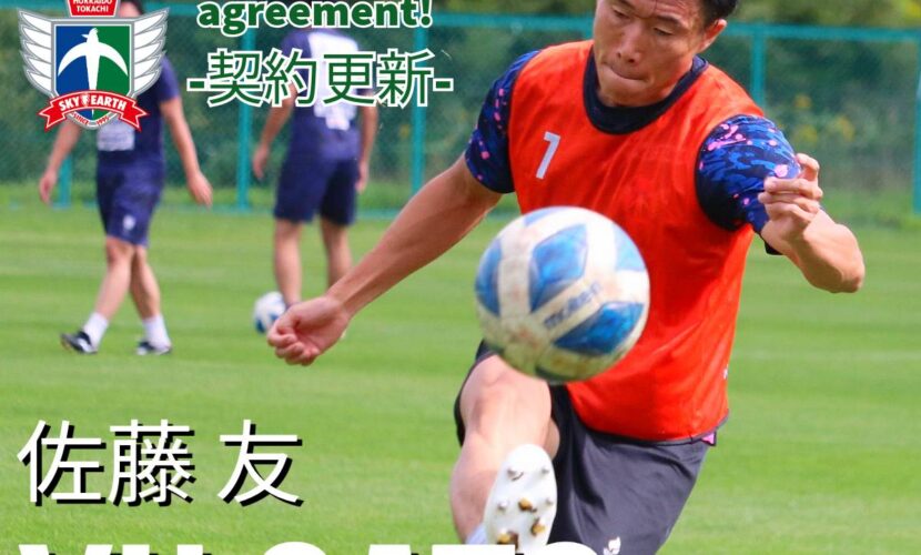 佐藤 友選手が2026シーズンも当クラブでプレーすることが決まりましたのでお知らせいたします。