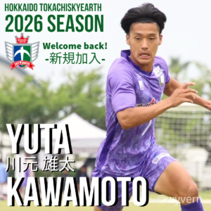 このたび、北海道十勝スカイアース2026シーズンの新戦力として、川元 雄太選手の加入が決定しましたのでお知らせ致します。